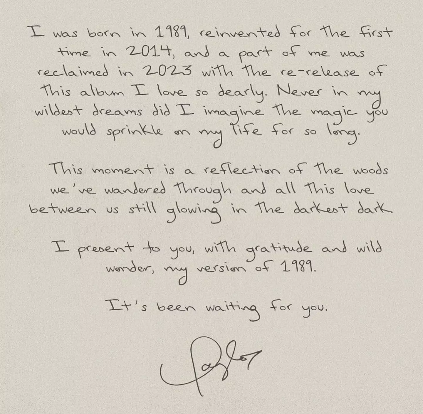 The 33-year-old sent a message to her fans after 1989 was released to the masses last week.