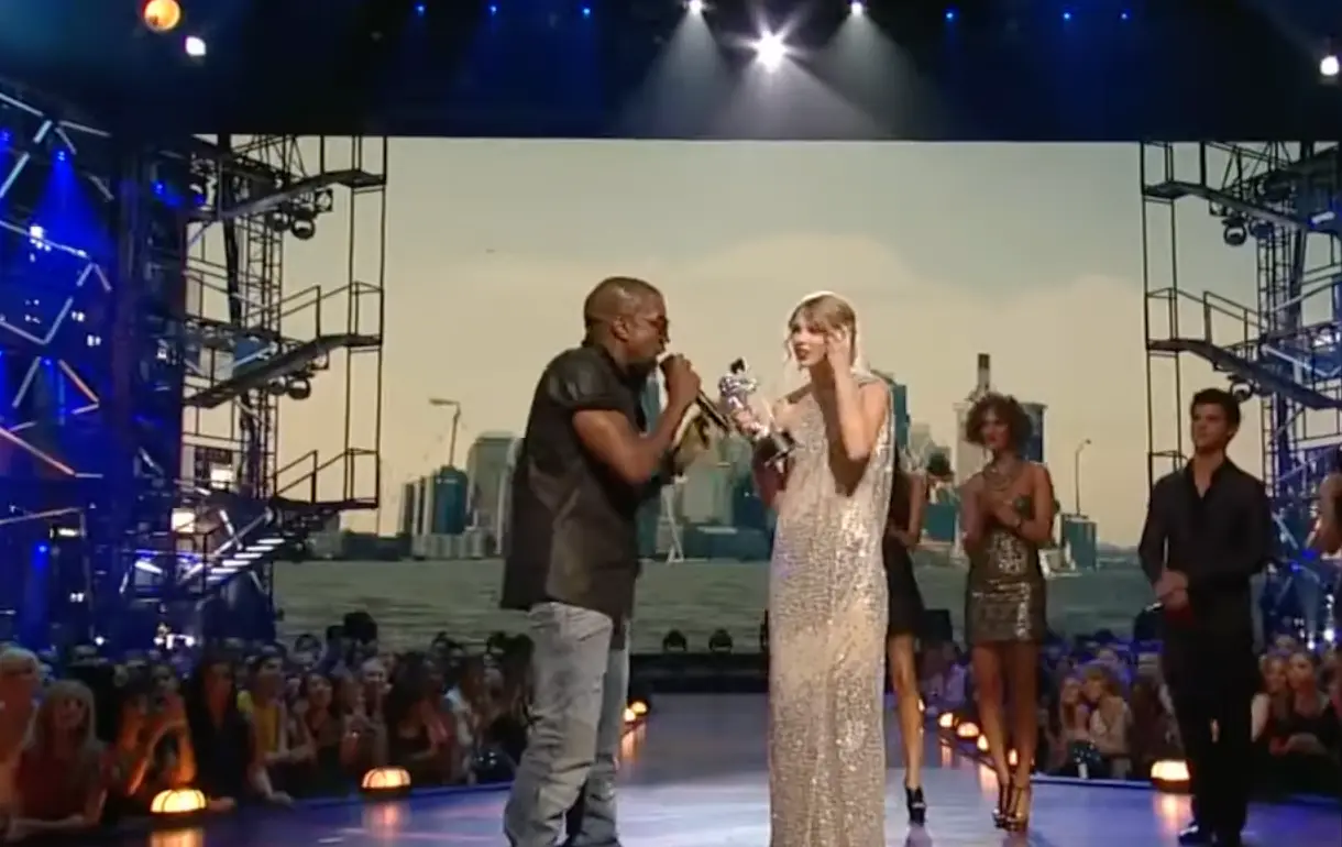 Footage from the incident shows a clearly confused-looking Swift clutching her award as West reiterates: “Of all time.”