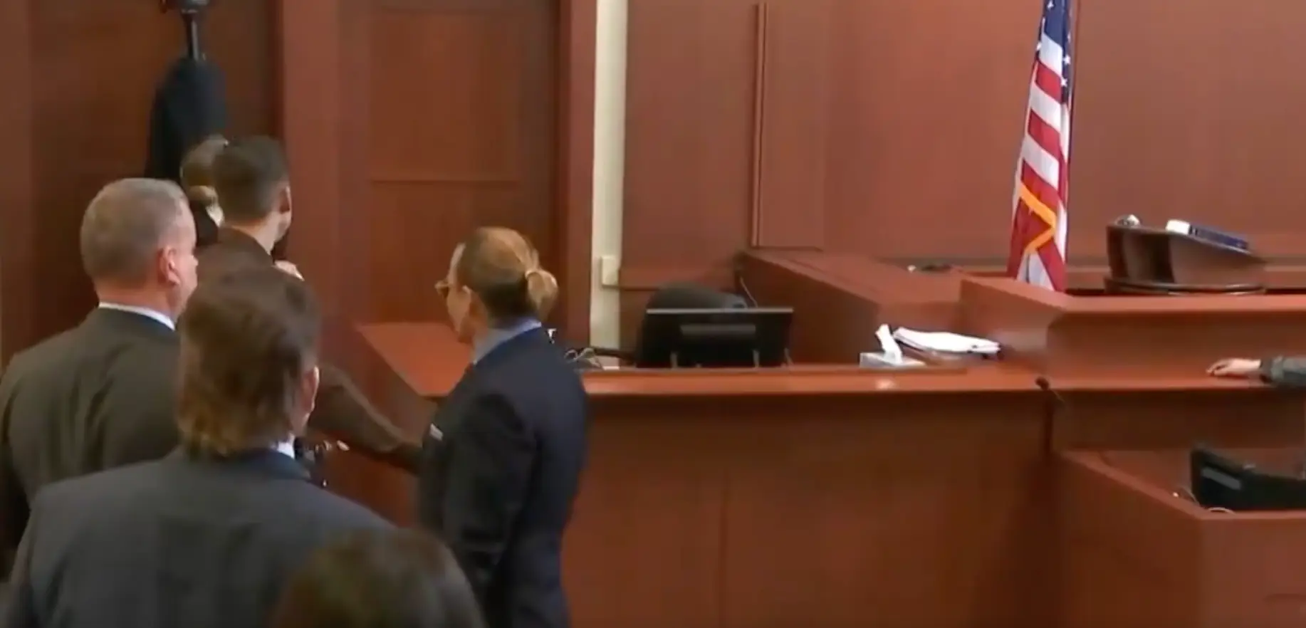 In the clip, we see Heard leaving the stand as the court prepares to break, grabbing her water bottle as she steps down. Meanwhile, Depp stands up from his seat and walks towards the stand, where presumably a door is nearby, out of frame.