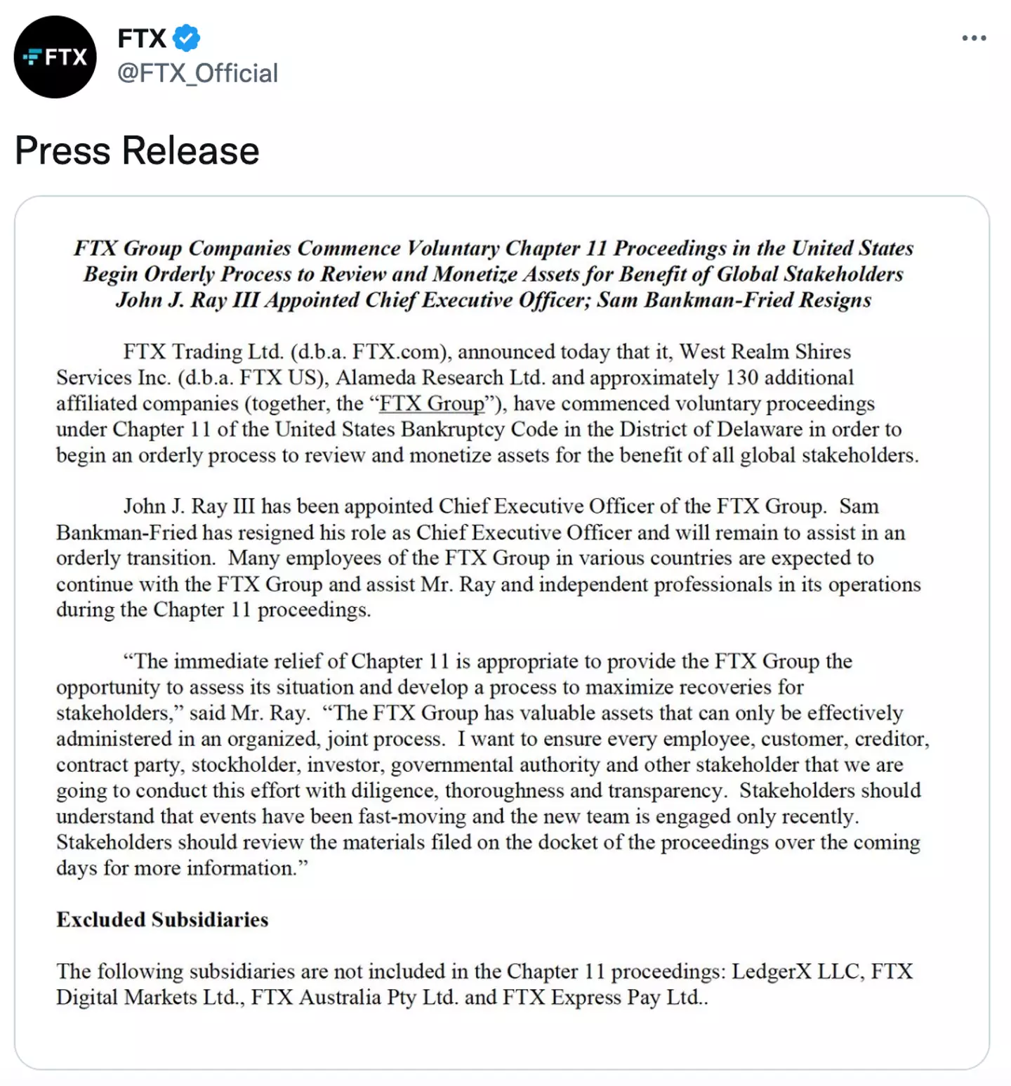 In a thread on Twitter earlier today, Bankman-Fried said: “Hi all: Today, I filed FTX, FTX US, and Alameda for voluntary Chapter 11 proceedings in the US.