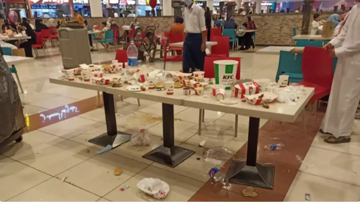 At a KFC in in Riyadh, Saudi Arabia, meanwhile, people were shocked to see huge piles of trash littering tables and the floor.
