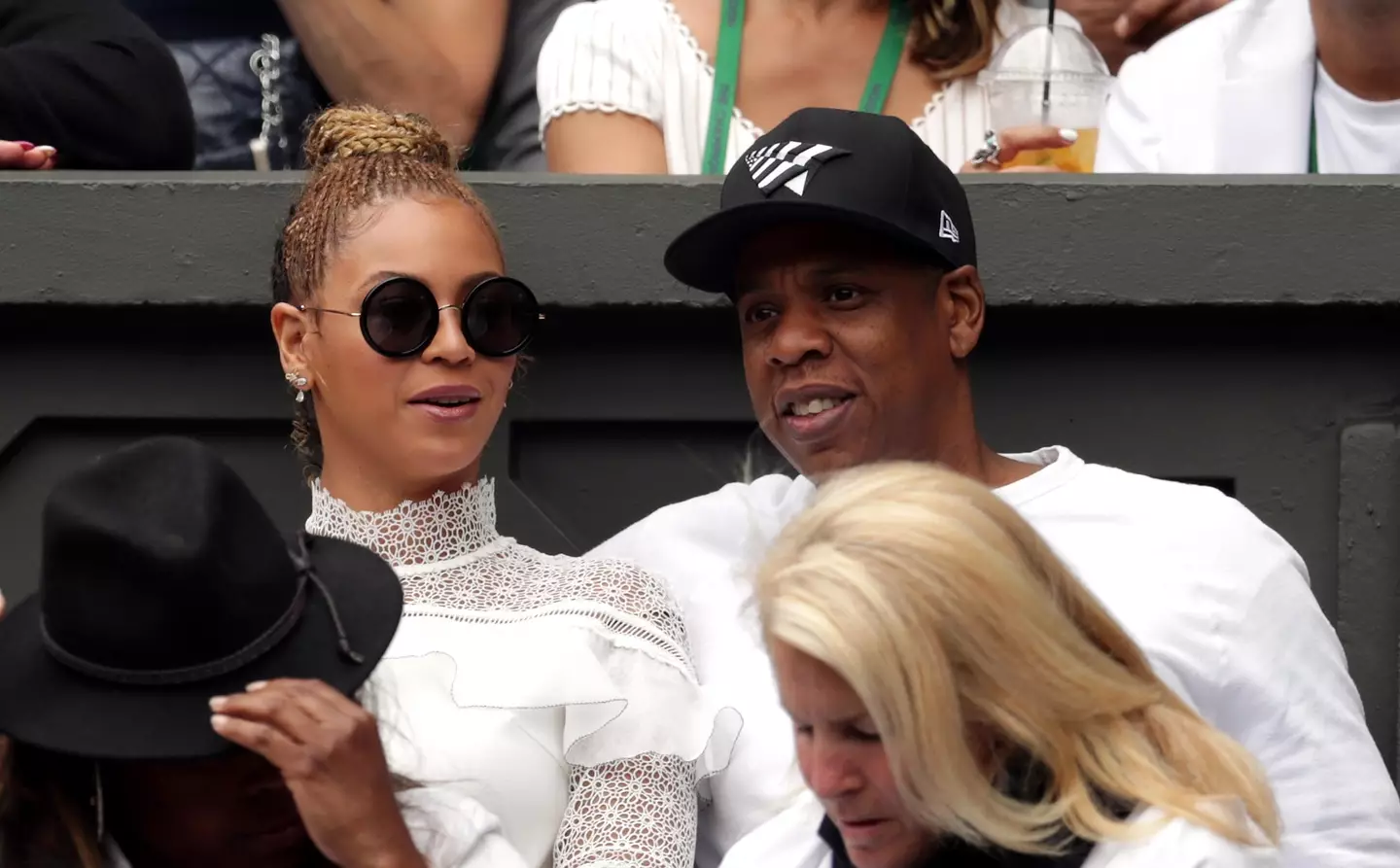 According to Teen Vogue, Blue, looking nearly identical to her mom, wore long braids, hoops, and an oversized t-shirt, while Jay-Z kept it casual in an all-black fit, hat, and sunglasses.