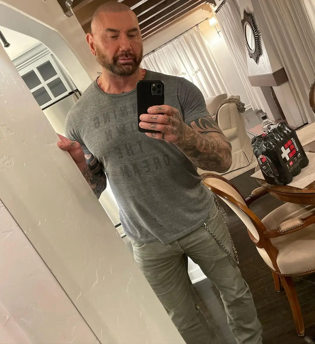The former professional WWE wrestler has managed to use his impressive figure to carve out a career in Hollywood, having most famously portrayed the towering warrior Drax the Destroyer in a number of Marvel films.