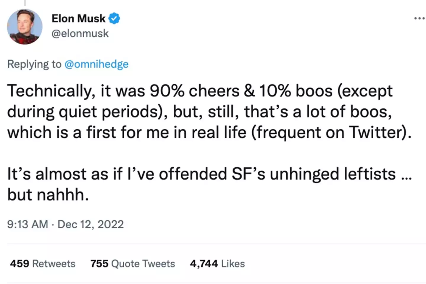 Elon Musk has finally responded after getting heavily booed at Dave Chappelle’s recent concert.