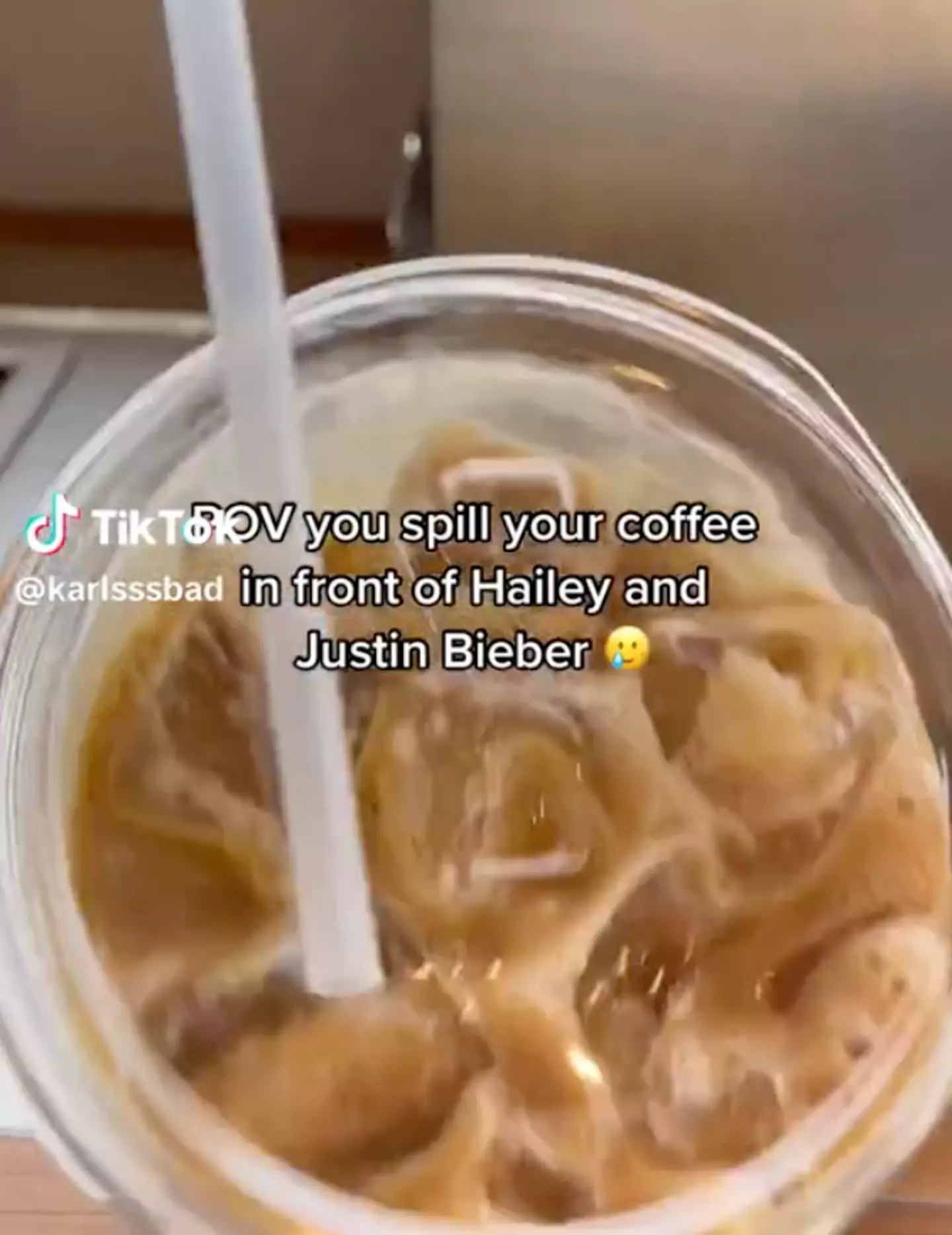 Karla Ruiz was at Community Goods in LA, where she attempted to film herself putting a straw in her iced coffee, but it didn’t quite go to plan, leaving Bieber looking less than impressed. You can see how it went down here: