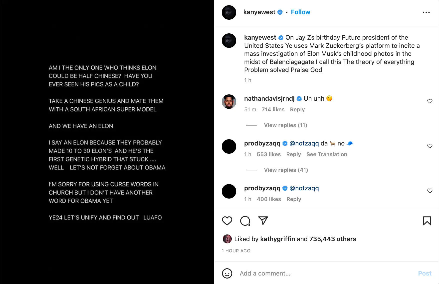 The post attracted loads of comments, with many begging the Donda rapper to stop ruining his public image and legacy.