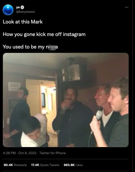 West - who now likes to be known as 'Ye' - later called out the Meta CEO on Twitter by sharing a picture of the two of them.