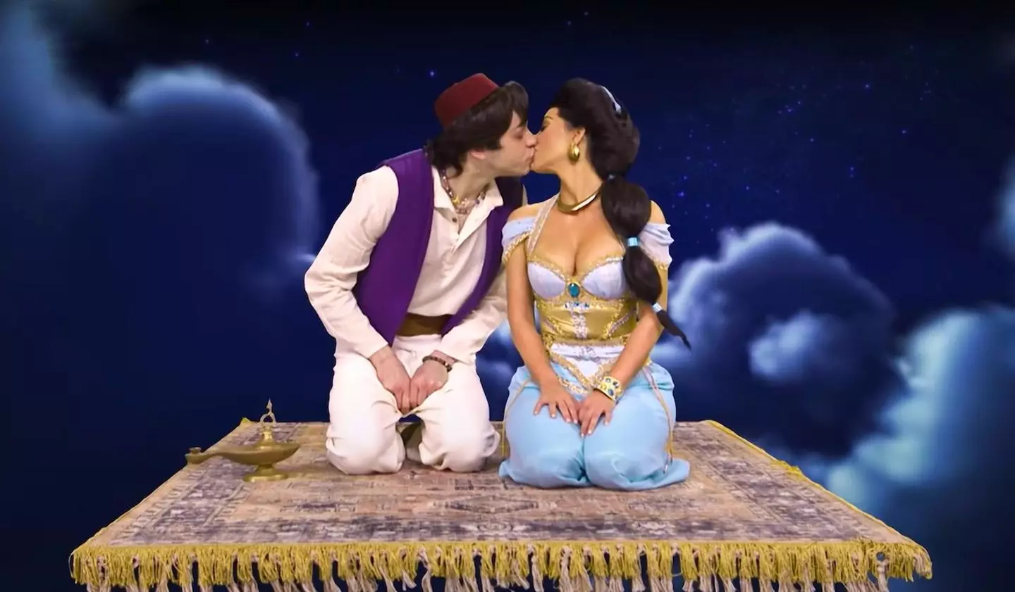Davidson, 28, and Kim starred as Aladdin and Jasmin, respectively, and shared an on-screen kiss, which sent the internet into a frenzy.