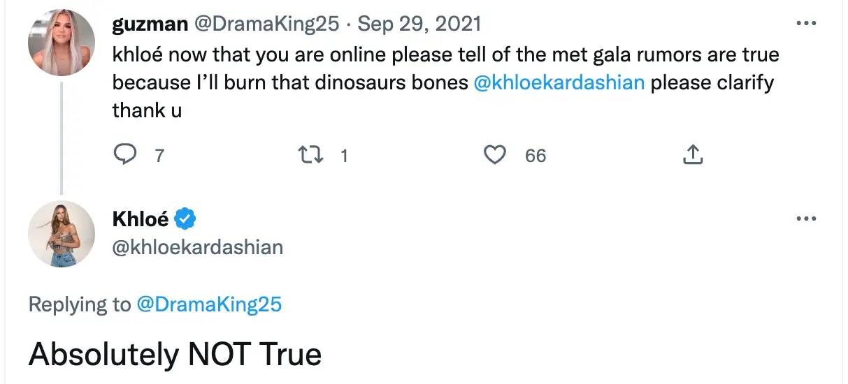Khloe has denied this story before, back when a fan reached out to her last year to ask if 'the Met Gala [rumours] are true'.