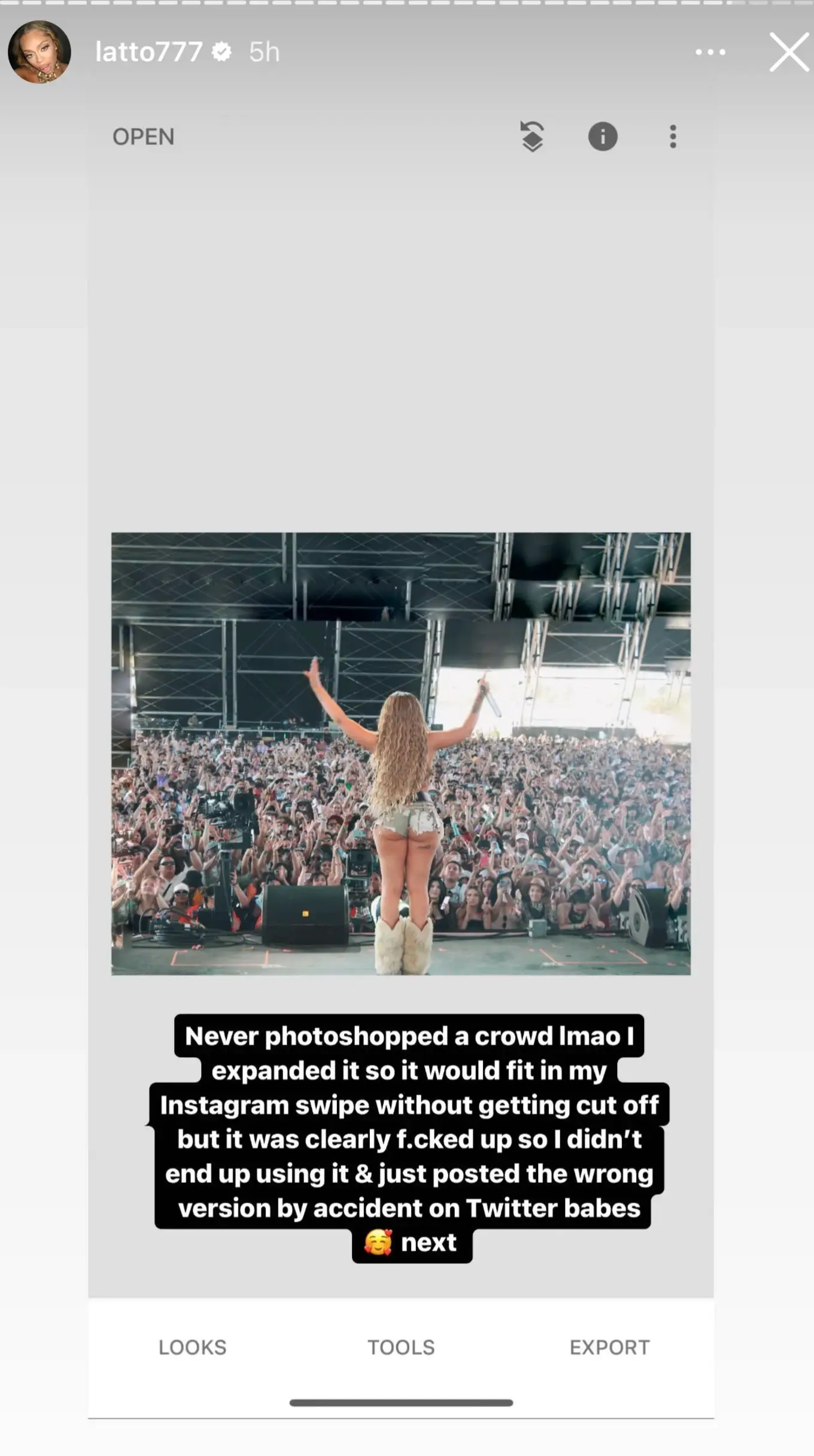 It all started when Latto posted a series of four photos to Twitter - one of which showed the rapper standing in front of the crowd with outstretched arms.