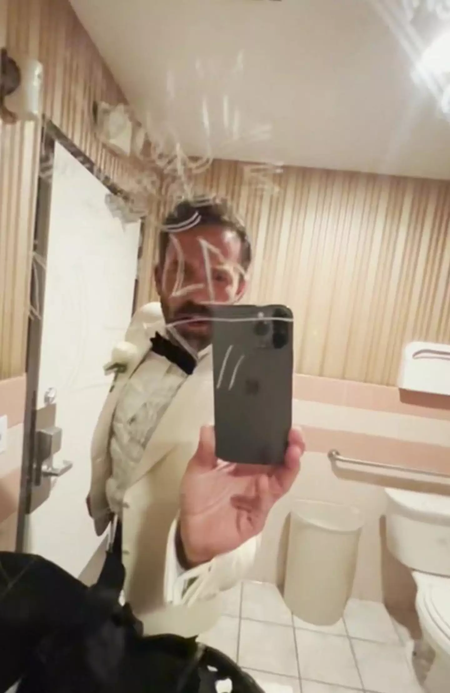 Her white wedding dress was reportedly from an 'old movie' while Affleck's white jacket was from his 'closet'.