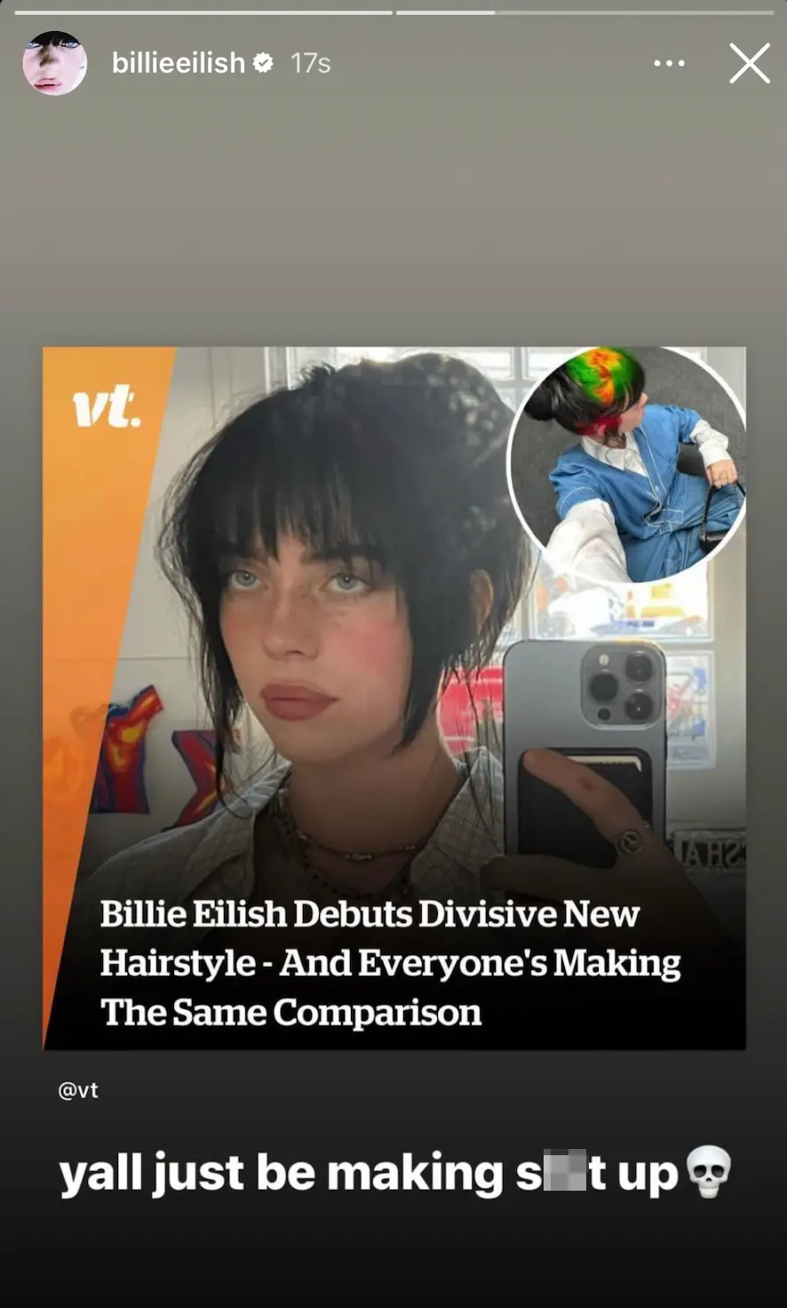 She reposted an article about the bizarre hairdo and said 'y'all just be making shit up'.