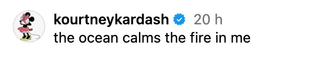 While a lengthy comment under Kourtney's post read: "Except when you're forced to jump into the ocean because you and your car have been engulfed in flames as you try to escape the fire that's burning down your home.