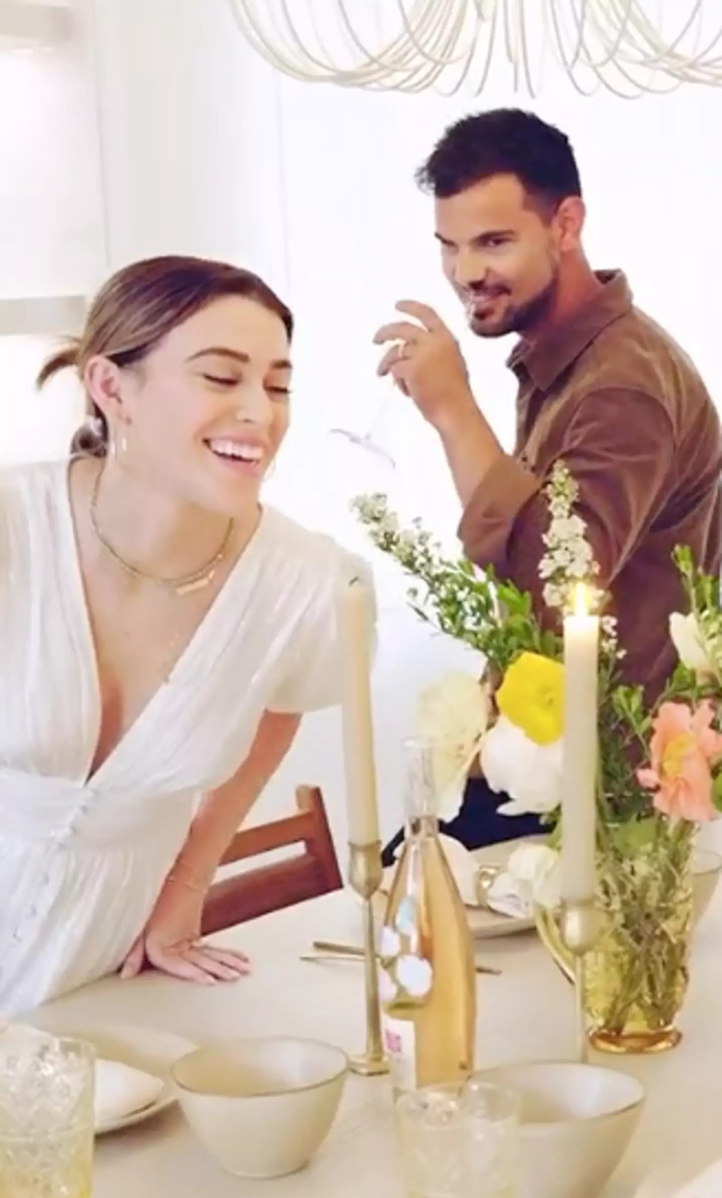 Back to the video and the pair talk about their dream evening, with hubby Taylor saying: "I think throwing a dinner party the Lautner way would be good food..."