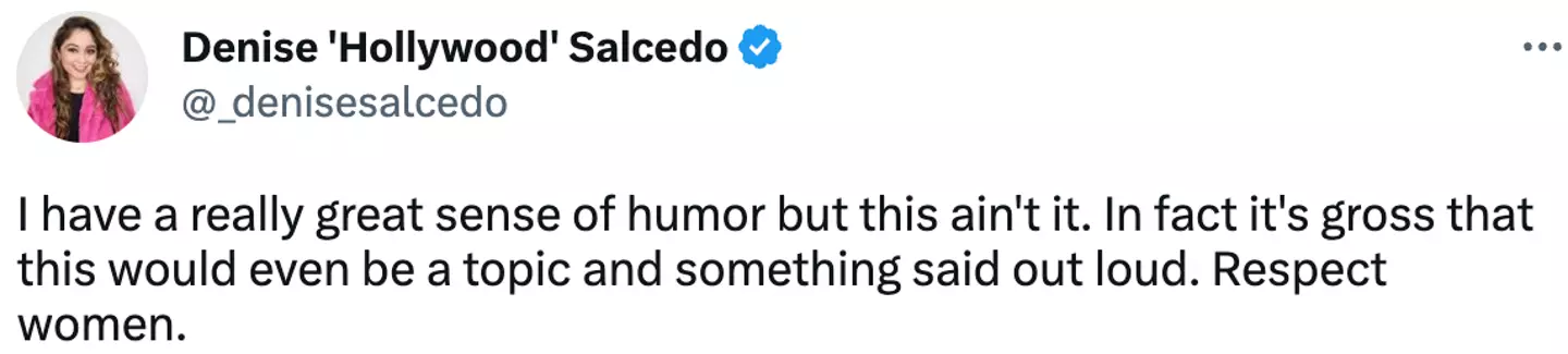 "I have a really great sense of humor but this ain't it. In fact it's gross that this would even be a topic and something said out loud. Respect women," commented one viewer.