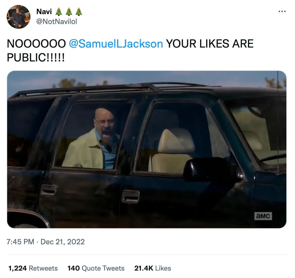 Either way, he ended up spending his birthday being inundated by warnings from fans, with one tweeting him: “NOOOOOO @SamuelLJackson YOUR LIKES ARE PUBLIC!!!!!”