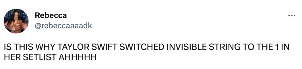 And a fifth wrote: "Taylor Swift replacing invisible string with the 1 on her eras tour set list struck a nerve."