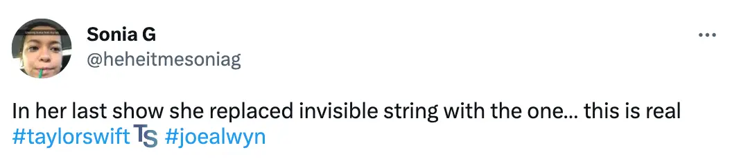 One fan tweeted: “THINKING ABOUT HOW SHE SWITCHED OUT INVISIBLE STRING FOR THE 1….”