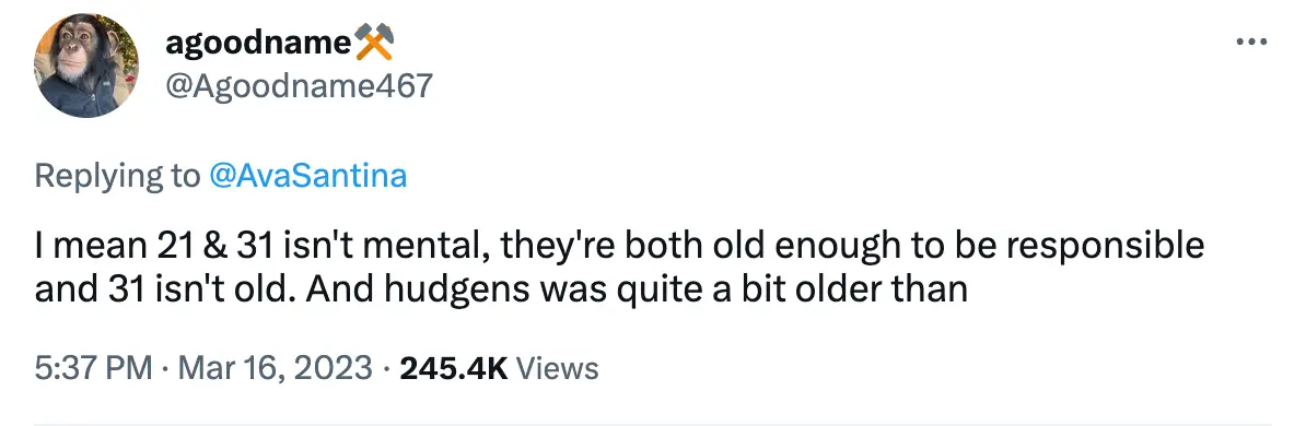 One posted: "I mean 21 & 31 isn't mental, they're both old enough to be responsible and 31 isn't old."