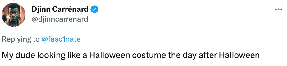 “My dude looking like a Halloween costume the day after Halloween,” one Twitter user replied to the pictures.