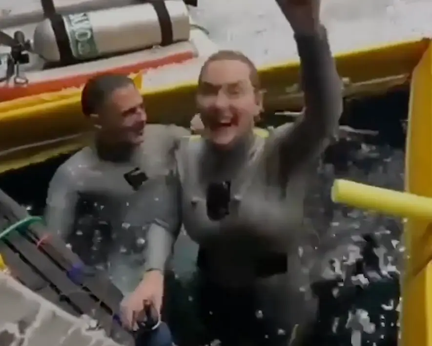 As shown in the clip above, the actor was alongside her trainer attempting to complete her underwater task.
