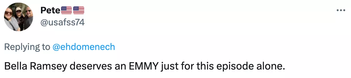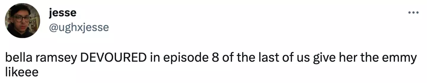 “@BellaRamsey an Emmy is waiting for you #tlou #TheLastOfUs #TheLastOfUsep8,” another fan declared.