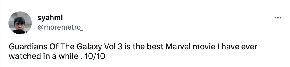 Another stellar review reads: “Guardians Of The Galaxy Vol 3 is the best Marvel movie I have ever watched in a while . 10/10.”