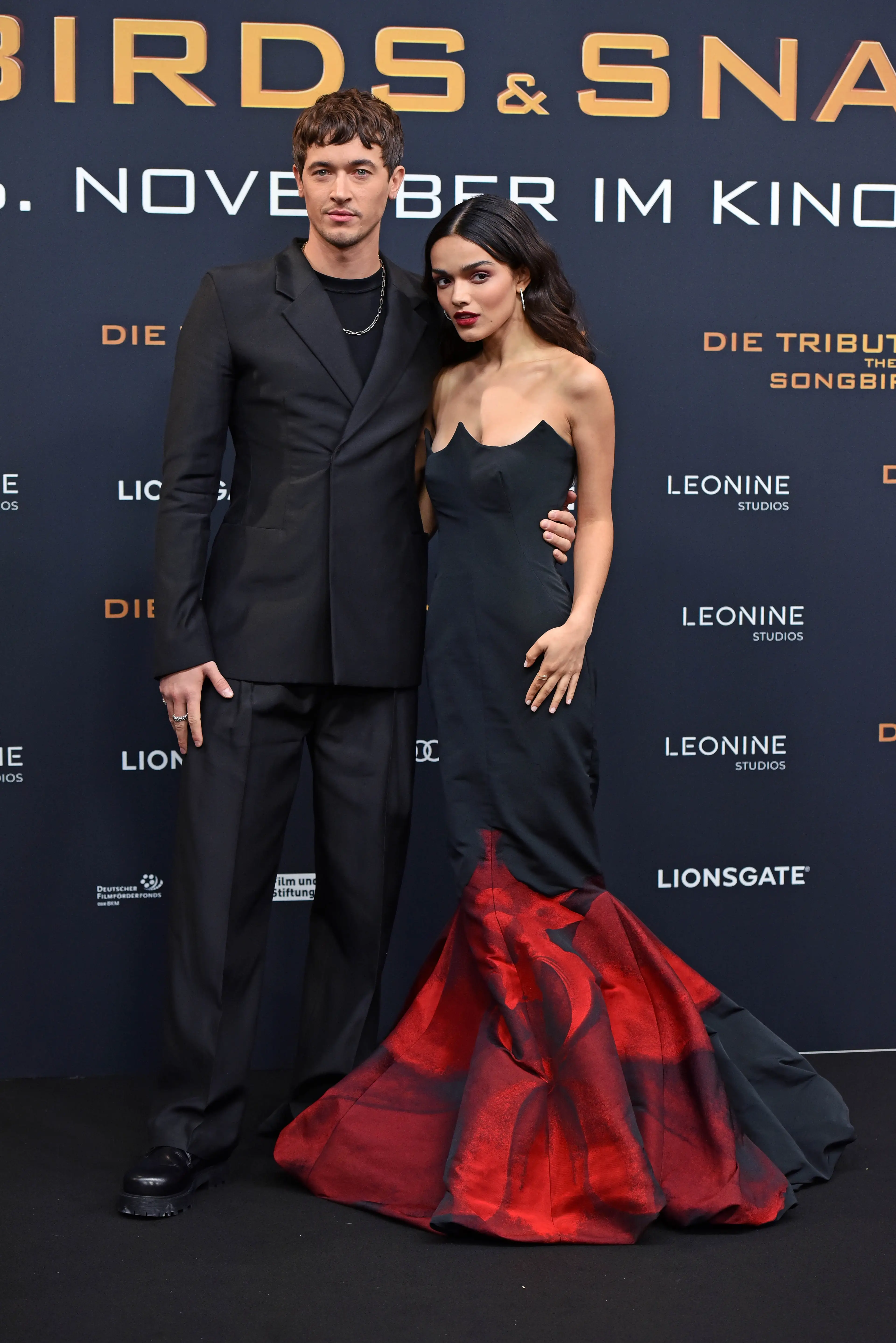 While walking the red carpet for The Hunger Games prequel, the 22-year-old stunned in a black mermaid dress with red bursting ‘flames’ on the tail, which resembled the dress Cinna made for Katniss in the 2014 sequel Catching Fire.