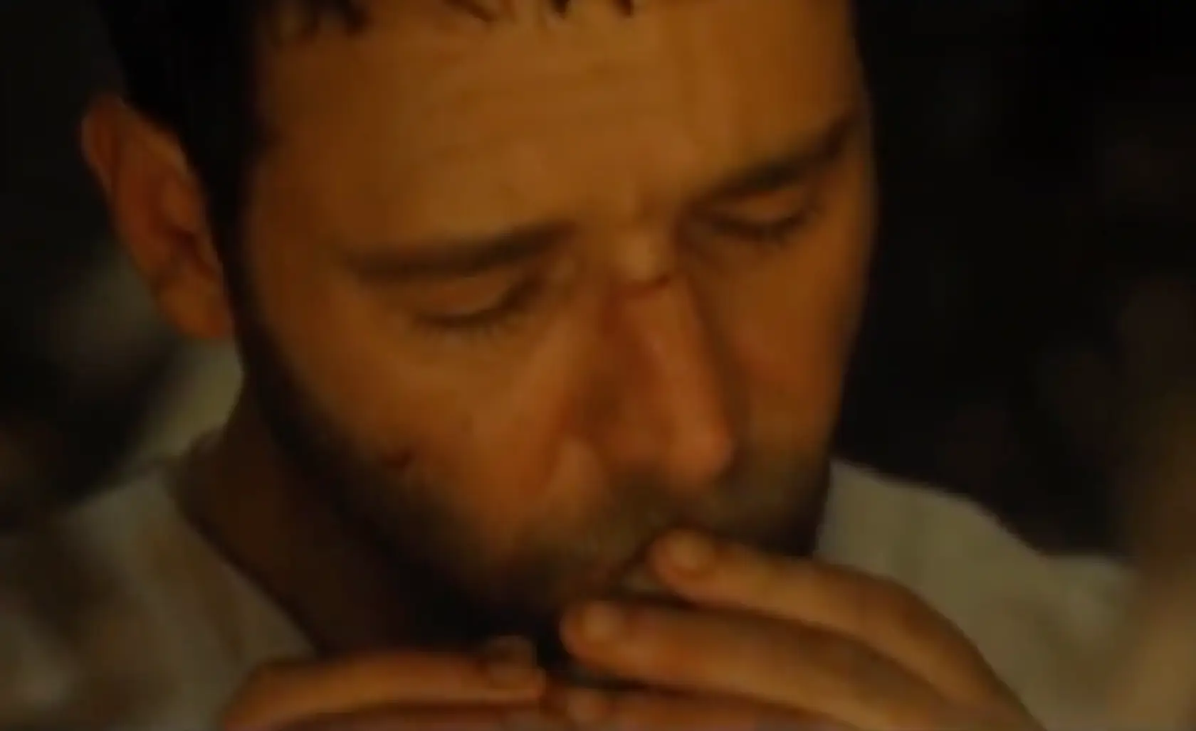 In the scene, Crowe’s Maximus is fresh from battle and is praying while his mind flashes back to his beloved wife and child.