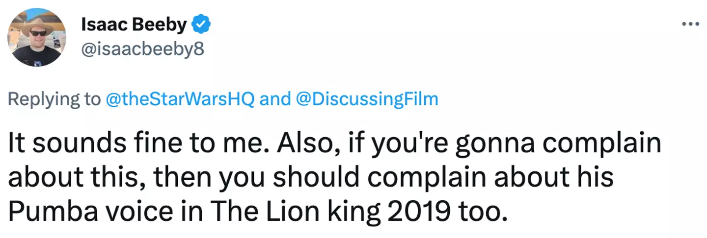 However, another Twitter user came to Rogen’s defence. “It sounds fine to me,” they wrote. “Also, if you’re gonna complain about this, then you should complain about his Pumba voice in The Lion King 2019 too.”