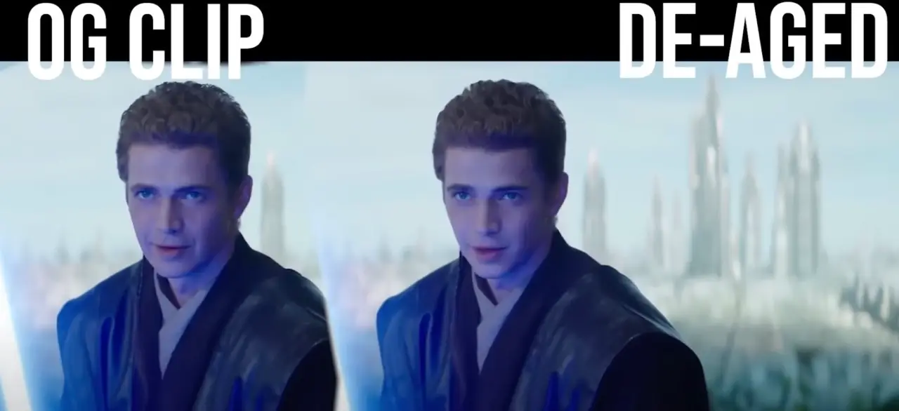 Outlaw Video Production de-aged Hayden using similar technology to what Lucasfilm has used in the past and in this week’s episode, a flashback showed the Padawan duelling with Obi-Wan.