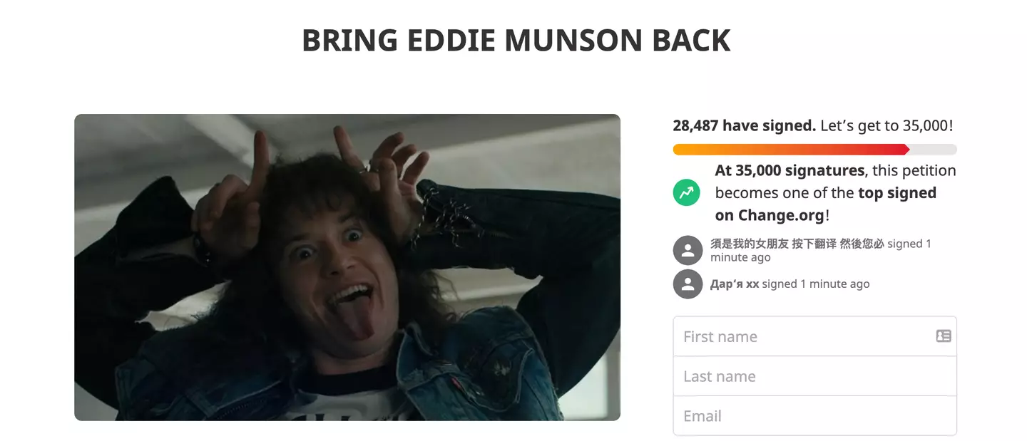The change.org petition - titled Bring Eddie Munson Back - accuses the show’s creators of ‘unfairly killing’ off Eddie and says he ‘deserves to be brought back and not just as a flashback’.