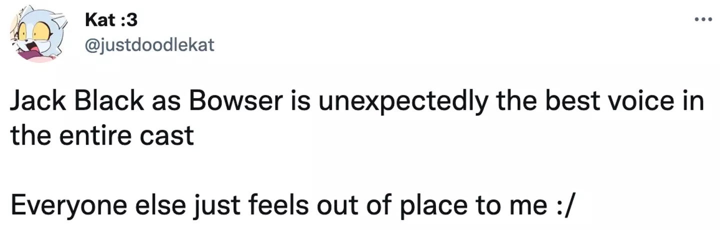 Another fan had a similar opinion. “Jack Black as Bowser is unexpectedly the best voice in the entire cast,” they said on Twitter.