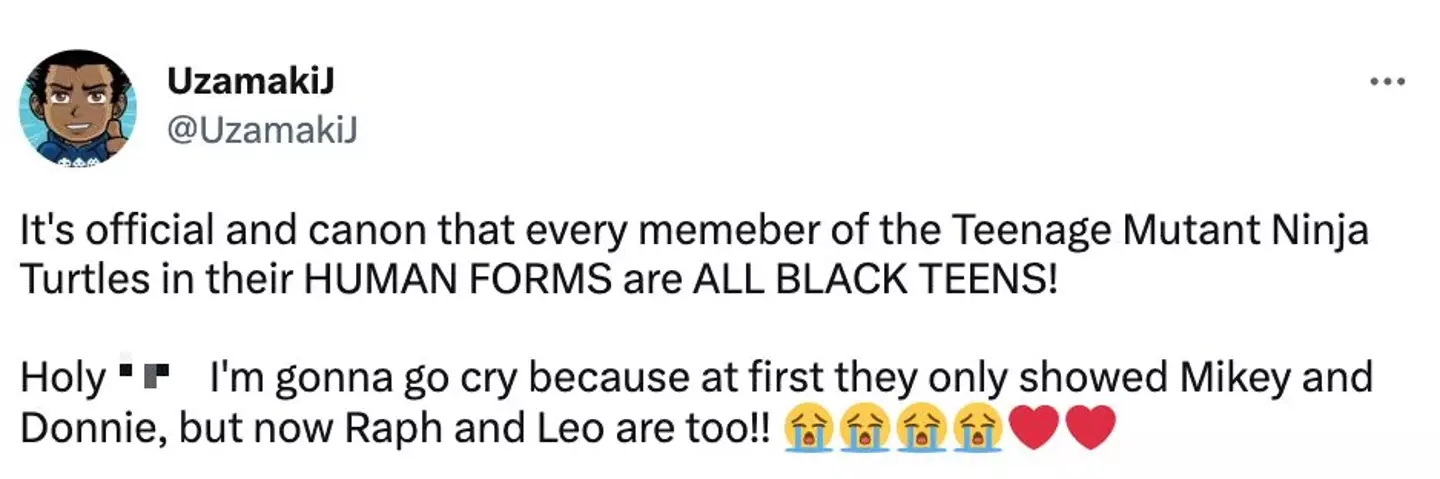 Teenage Mutant Ninja Turtles fans have been left in tears after getting official confirmation that the four teens are Black in their human form.