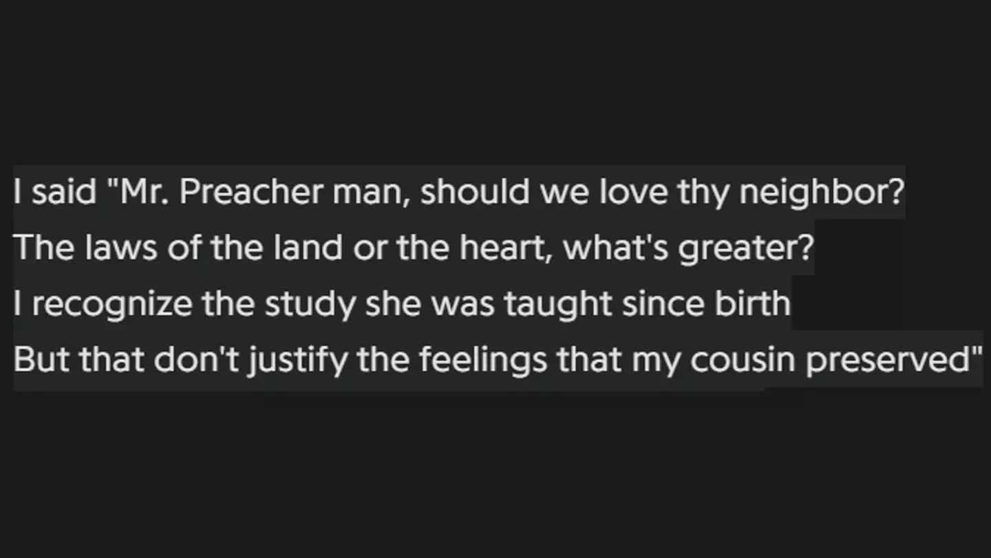 After examining the early source of his prejudice from a childlike perspective, the second half of the track sees Lamar rap about his 'favourite cousin' who later came out as trans, and the church’s response to her transition.