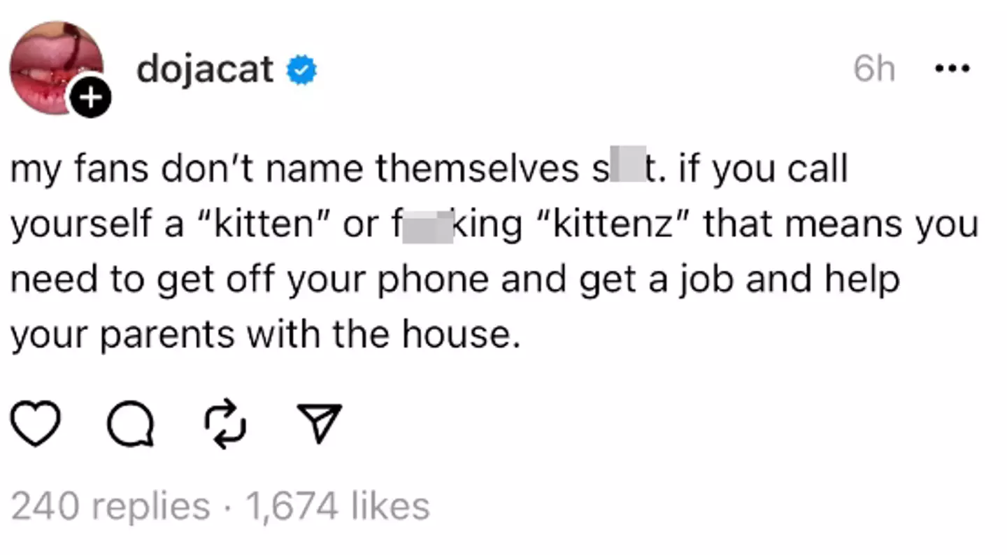 Much like how Taylor Swift has the Swifties, Ariana Grande has the Arianators and Lady Gaga has her Little Monsters, fans of Doja Cat have dubbed themselves ‘Kittenz’.