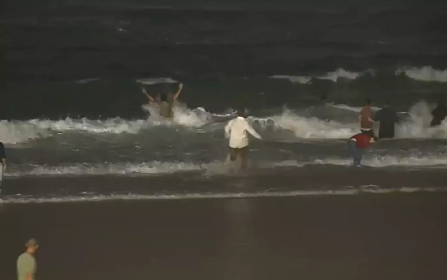 Burt then interrupted his report to go and help a small group of beachgoers go and rescue the boy and drag him back to safety.