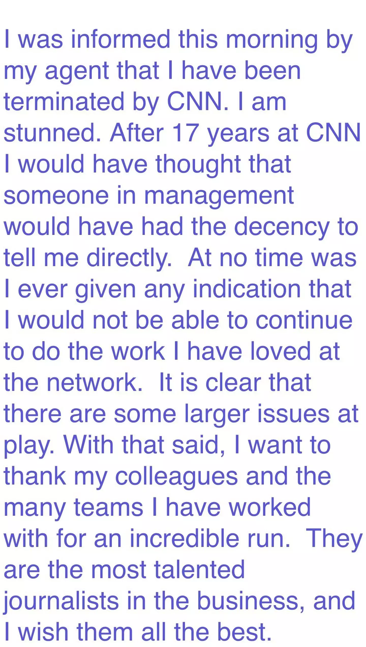 He continued: "At no time was I ever given any indication that I would not be able to continue to do the work I have loved at the network."