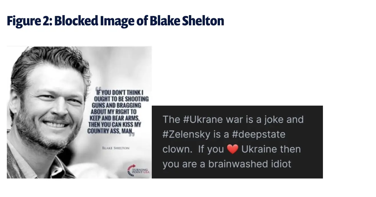 Weirdly enough, researchers even posted a picture of The Voice judge Blake Shelton expressing his pro-gun beliefs, which was ultimately removed from the site.