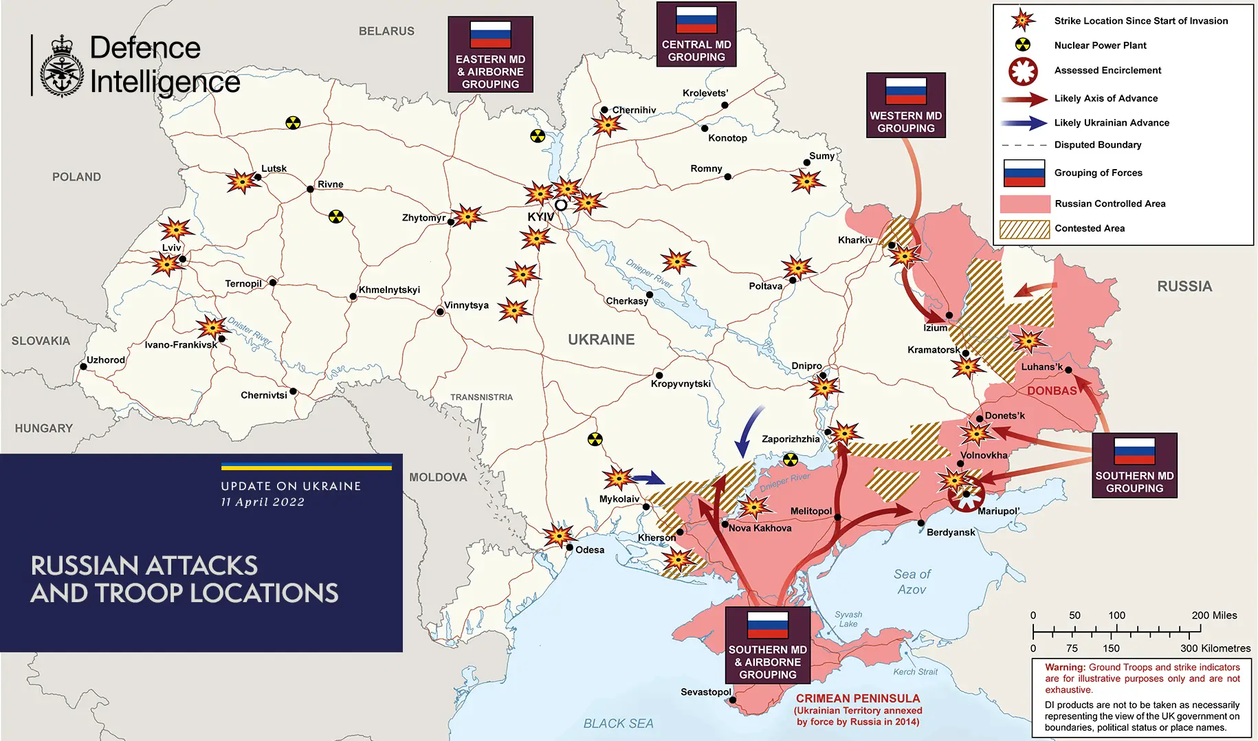 Today, the UK's Ministry of Defence (MoD) tweeted: "The illegal and unprovoked invasion of Ukraine is continuing", accompanying the announcement with a map of Ukraine, outlining the location of Russian forces.