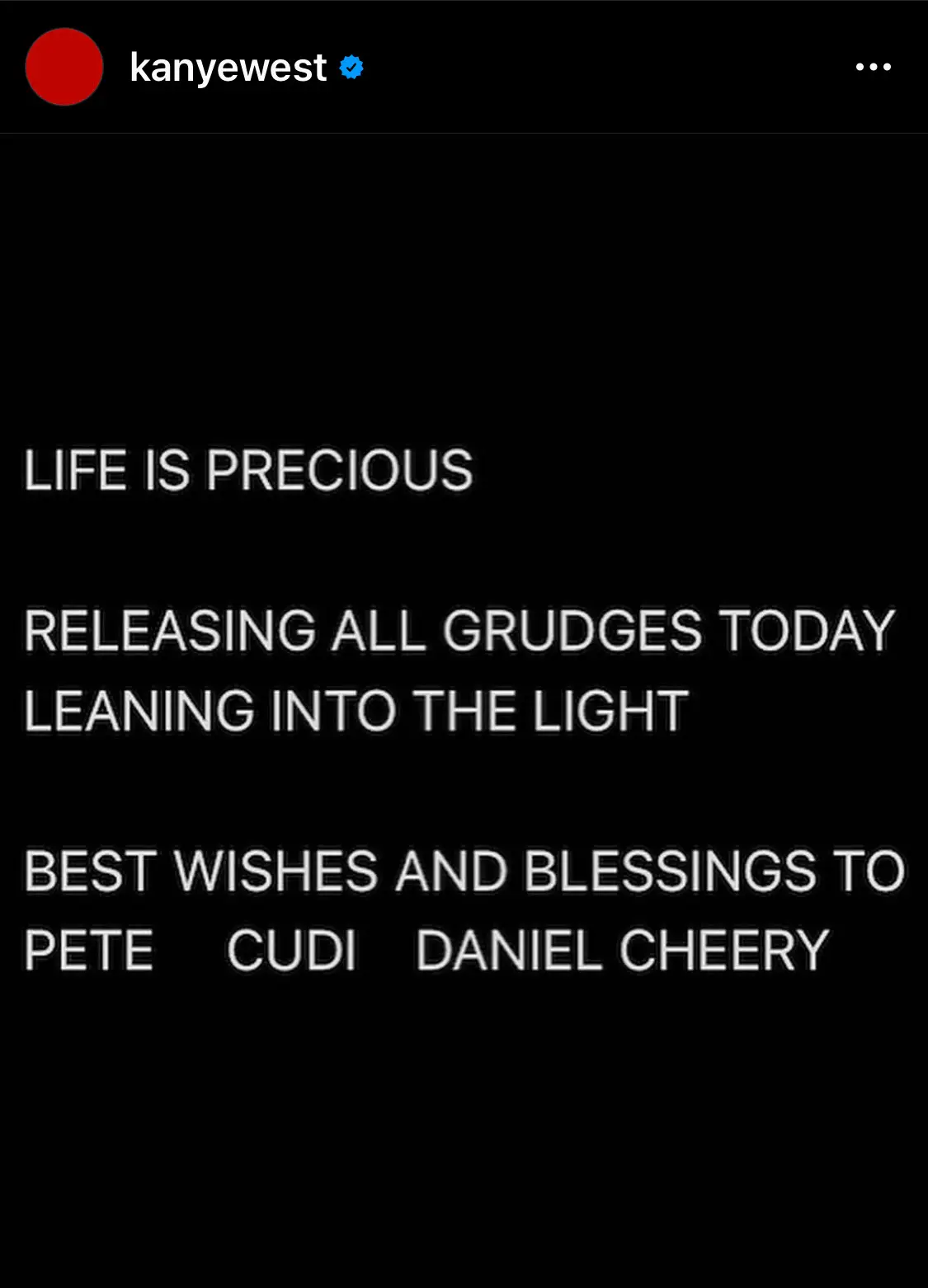 In a now-deleted post, Kanye wrote in caps: "LIFE IS PRECIOUS.