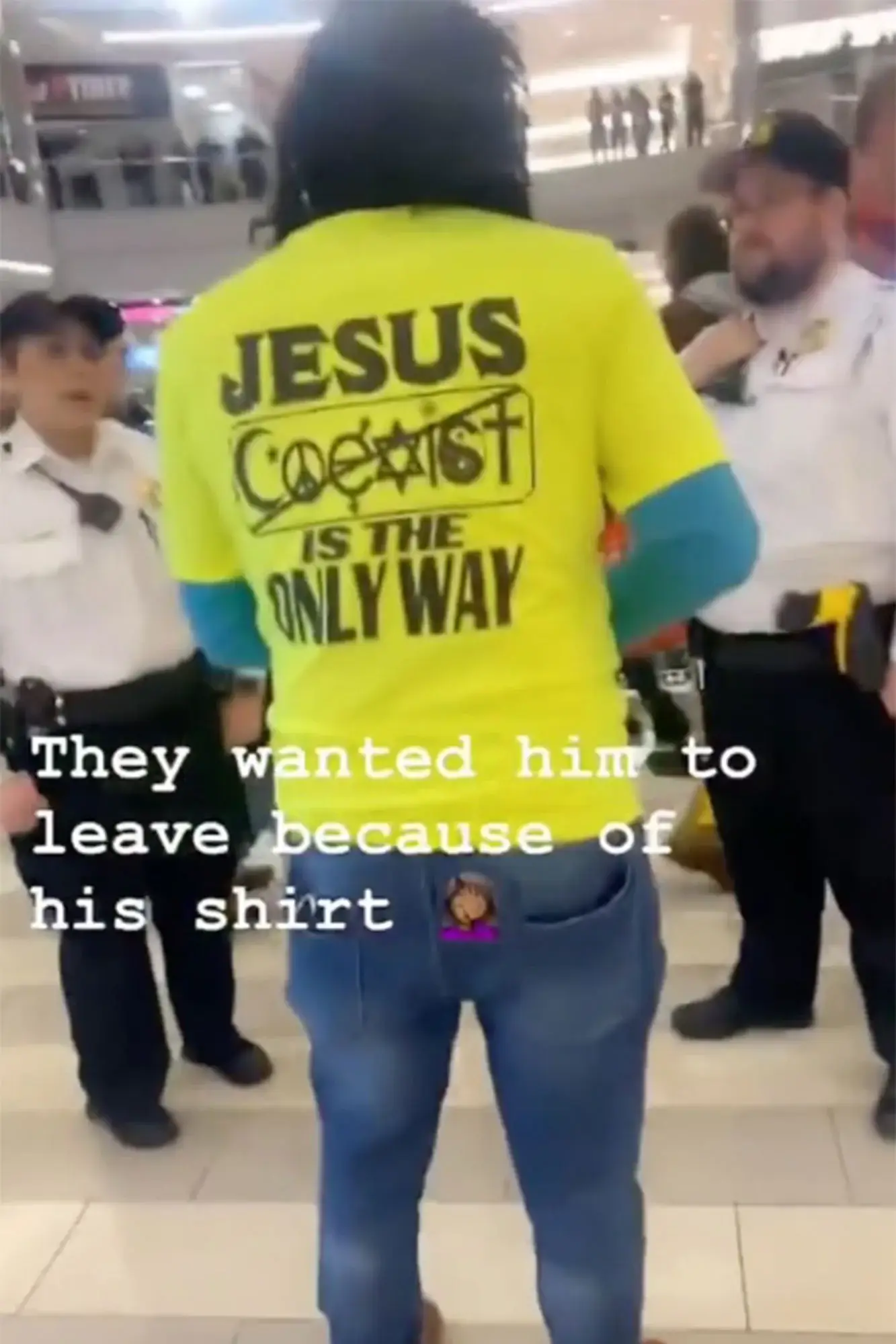 A man wearing a religious t-shirt was ordered to leave a shopping mall in the United States if he was not willing to remove the item of clothing.