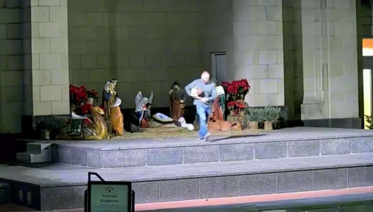 Sharing the footage online, FWPD wrote: “Not a very WISE MAN to steal from the nativity scene in Sundance Square.