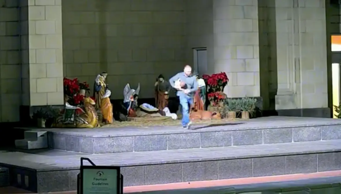 Police in Fort Worth are on the hunt for a man who stole a life-size baby Jesus from a nativity scene over the weekend.