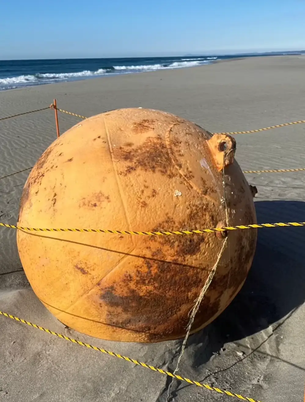 The buoys are reported to be made in a similar size to the one found on the beach and they are used as a means of guiding mariners or to mark various locations in the ocean.
