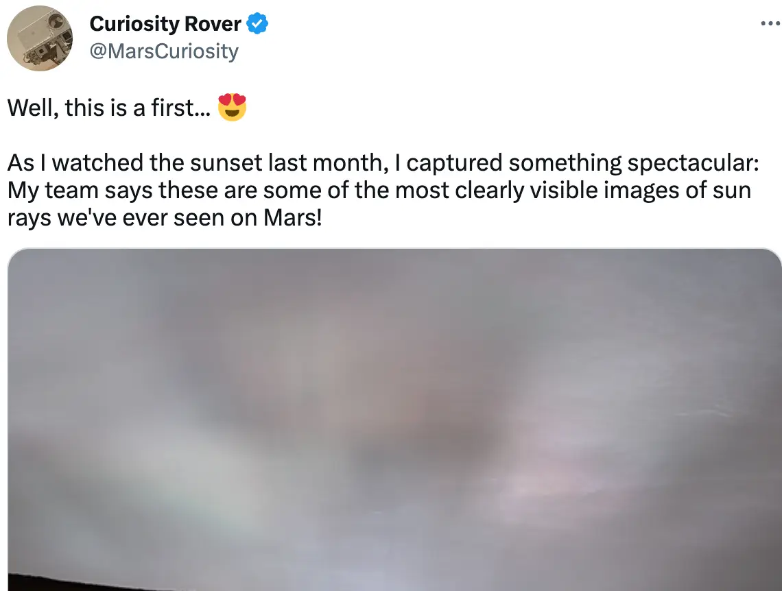 "As I watched the sunset last month, I captured something spectacular: My team says these are some of the most clearly visible images of sun rays we've ever seen on Mars!|