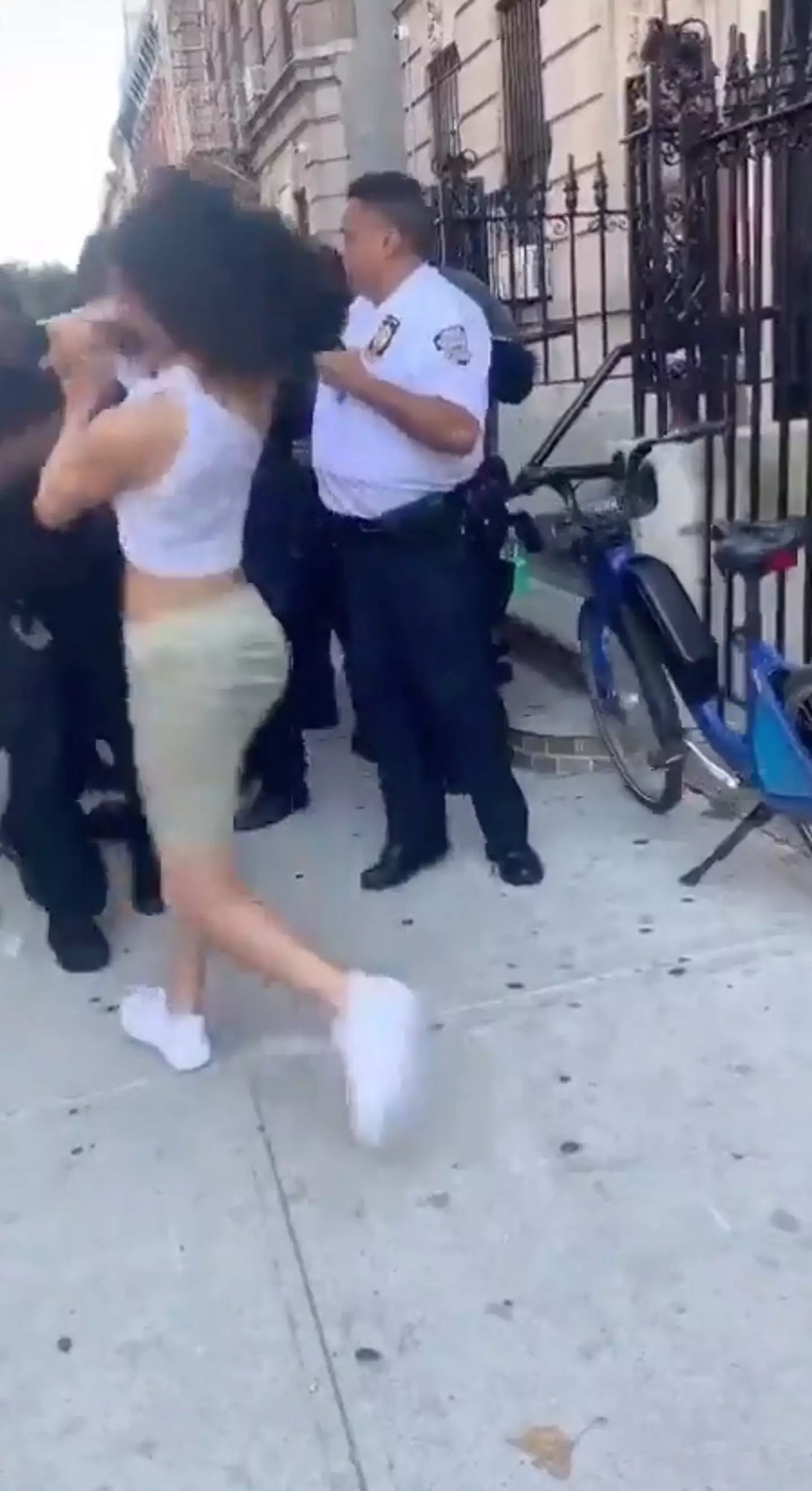 A NYPD statement said that 'while police were effecting the arrest multiple individuals on scene interfered by physically assaulting numerous officers. One officer sustained a minor injury to the head'.