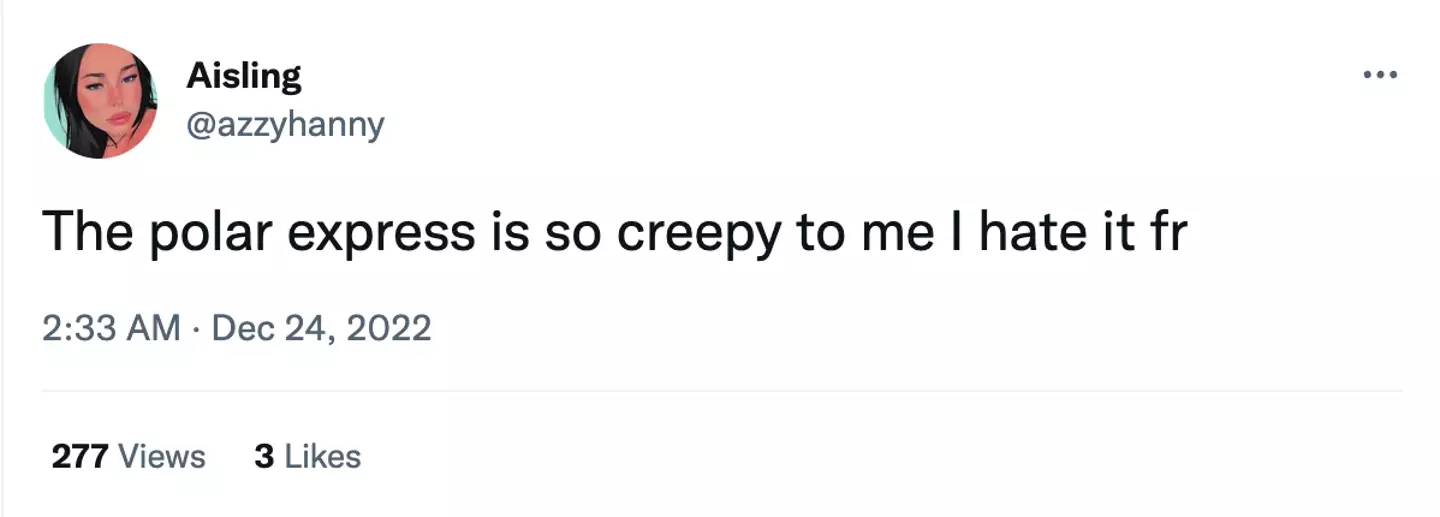 “The Polar Express is so creepy to me I hate it fr,” said another.