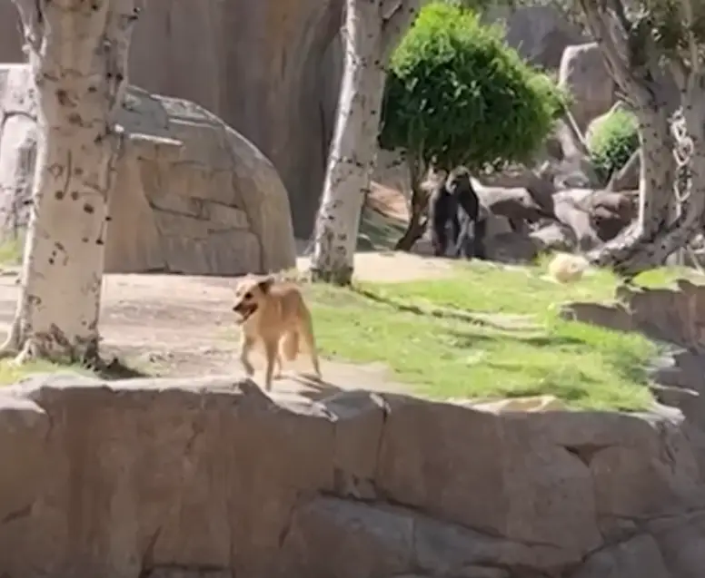 With zookeepers on hand, though, the gorilla was eventually called back inside the enclosure before the San Diego Humane Society then stepped in to safely rescue the dog.