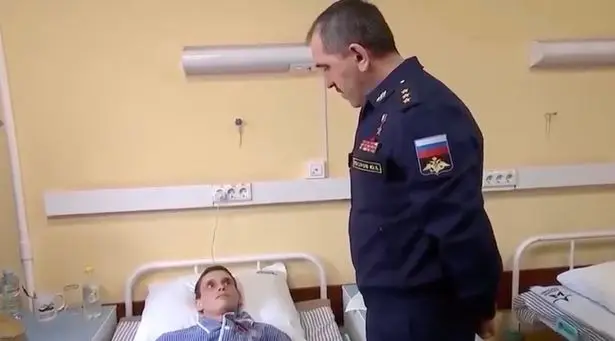 In another clip, Russia’s defence minister Yunus-Bek Yevkurov could also be seen meeting another soldier, standing over the hospital bed he was lying in.